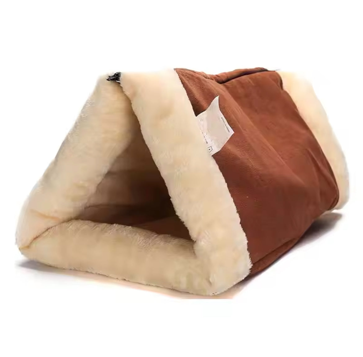Cama de forma triangular, ideal para proporcionar a tu mascota un lugar cómodo y acogedor para descansar. Hecha de materiales duraderos y fáciles de limpiar.
