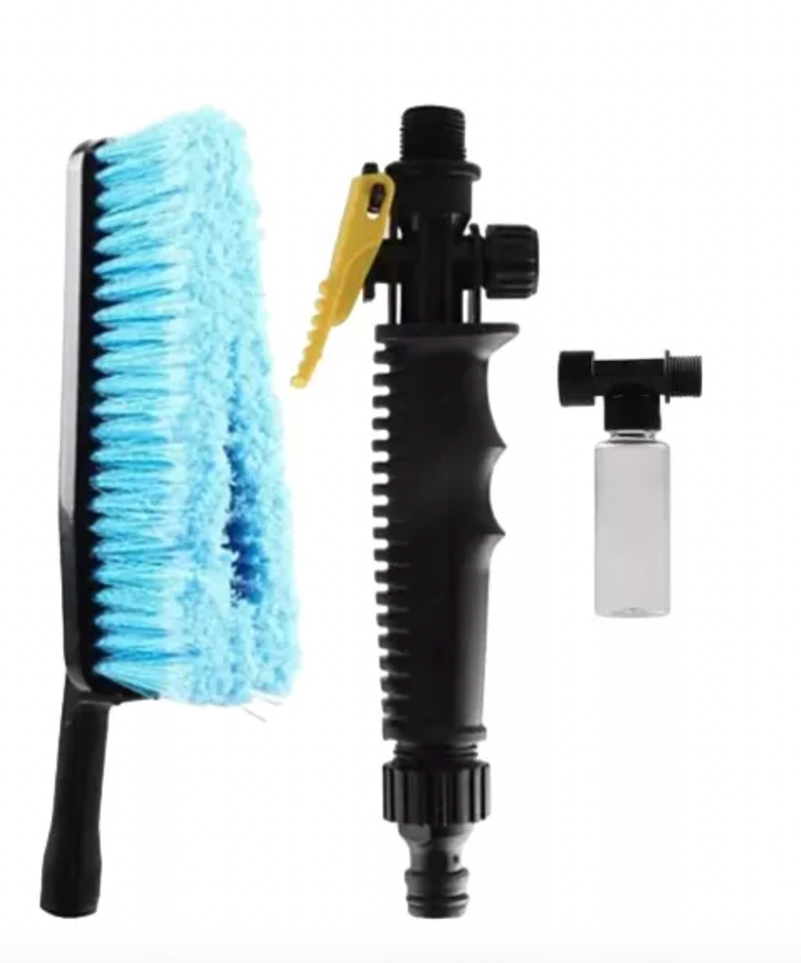 Este cepillo de lavado de autos es ideal para mantener el coche limpio y en buen estado. Su mango largo retráctil y cepillo de pelo suave lo hacen perfecto para limpiar áreas difíciles sin dañar la pintura. La inclusión de un adaptador de mango y botella para shampoo lo hace un conjunto completo y práctico.