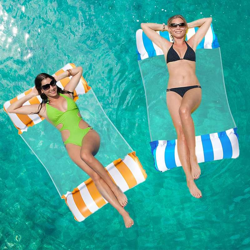 Disfruta del sol y del agua con este flotador hamaca inflable colchón para piscina. Diseñado para proporcionar comodidad y relajación, este flotador es perfecto para pasar el día en la piscina.