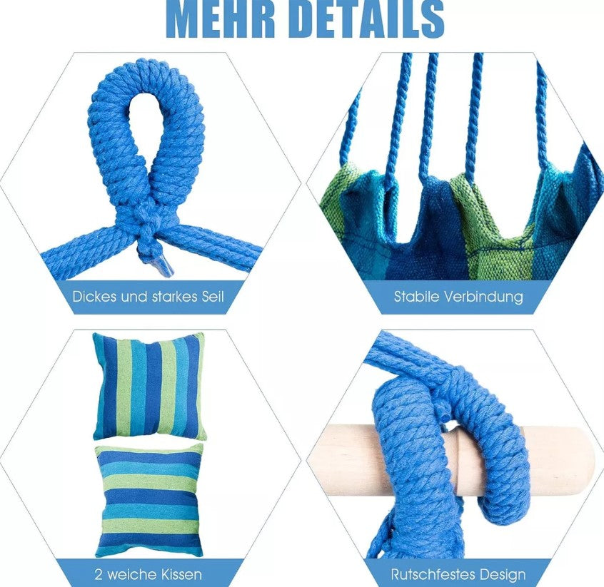 - Incluye: 1 silla hamaca columpio y 2 cojines