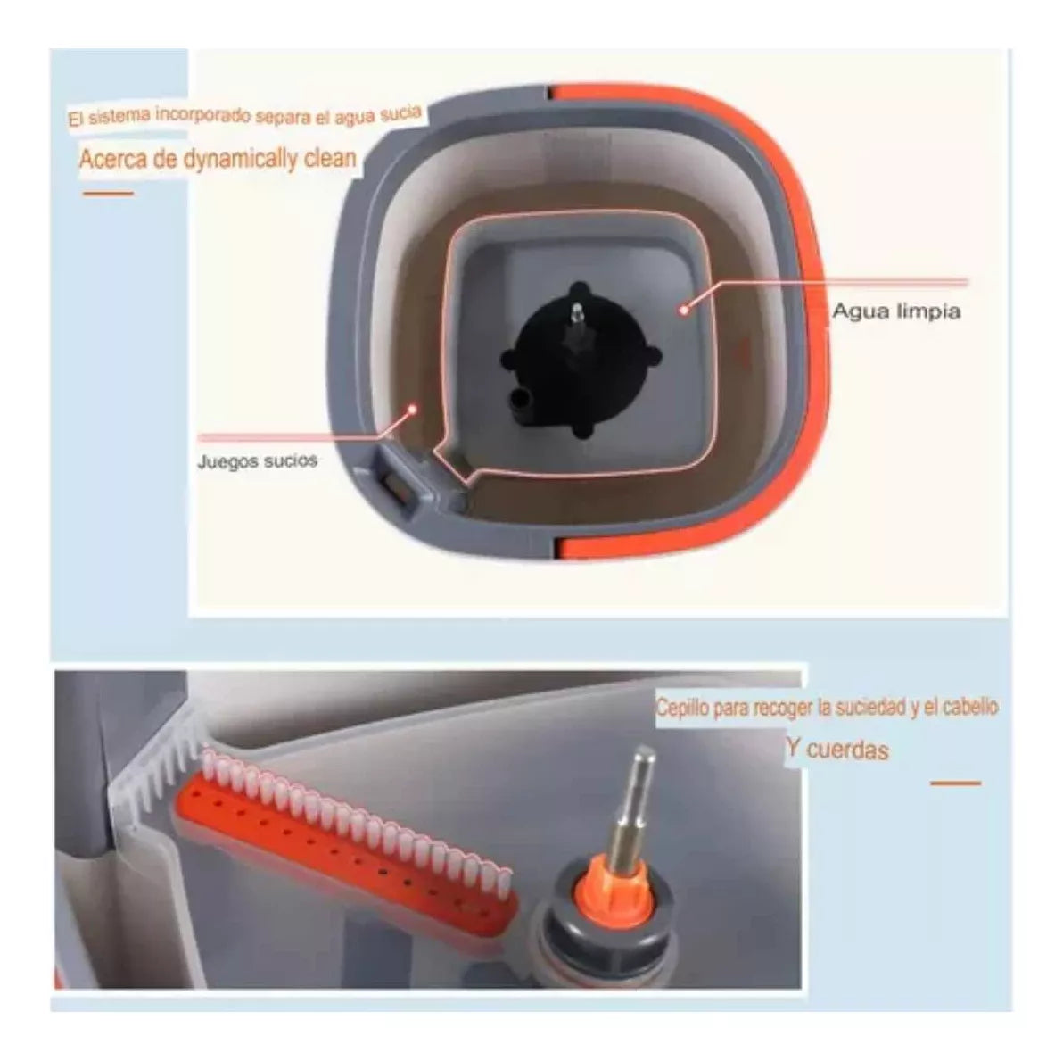 - Cepillo integrado para limpiar la mopa